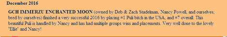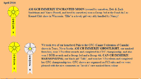 On this page we'll be listing the latest achievements and accomplishments of our dogs over the past year